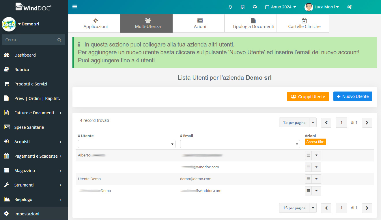 Winddoc offre il supporto per la gestione multiutenza e multiazienda, strumenti essenziali per semplificare e ottimizzare l’operatività di organizzazioni complesse.