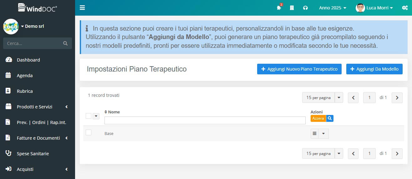 La configurazione di un piano terapeutico inizia con la creazione del modello, all’interno della sezione