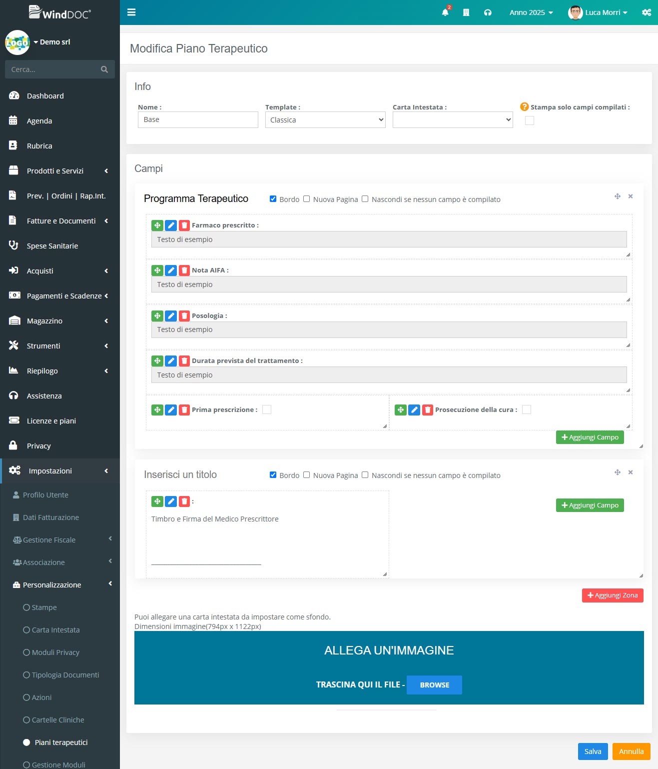 Combinando più zone e campi, è possibile costruire un modello di piano terapeutico completamente personalizzato, pronto per essere utilizzato nello studio.