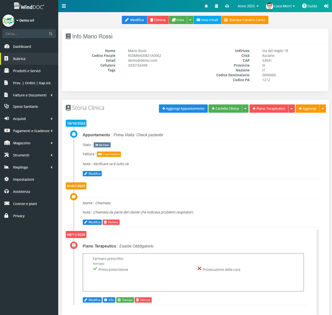 Dalla scheda cliente è possibile accedere direttamente a tutti i piani terapeutici collegati.